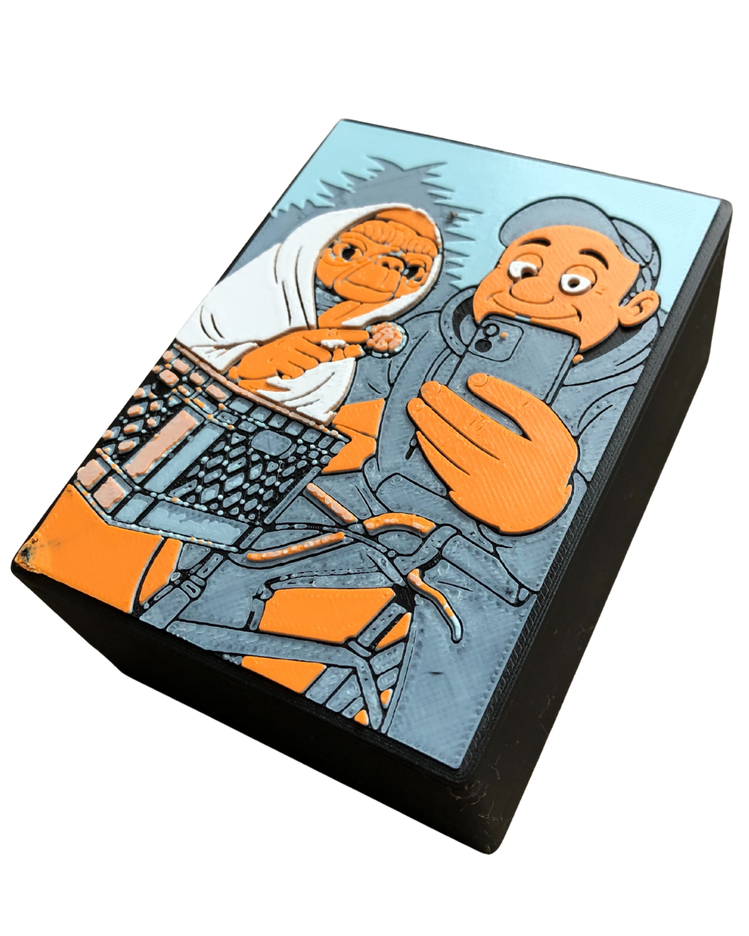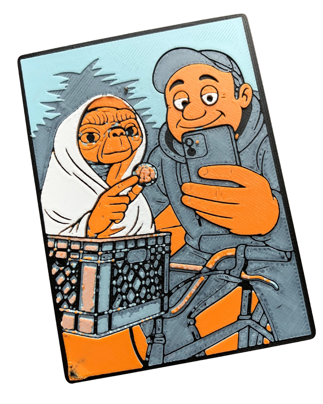 And, for reasons unexplained but deeply on-brand… posing with E.T.