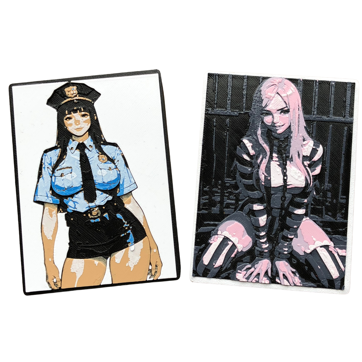 This one-of-a-kind two-panel set captures the eternal tension between order and chaos rendered in unapologetic pin-up style.