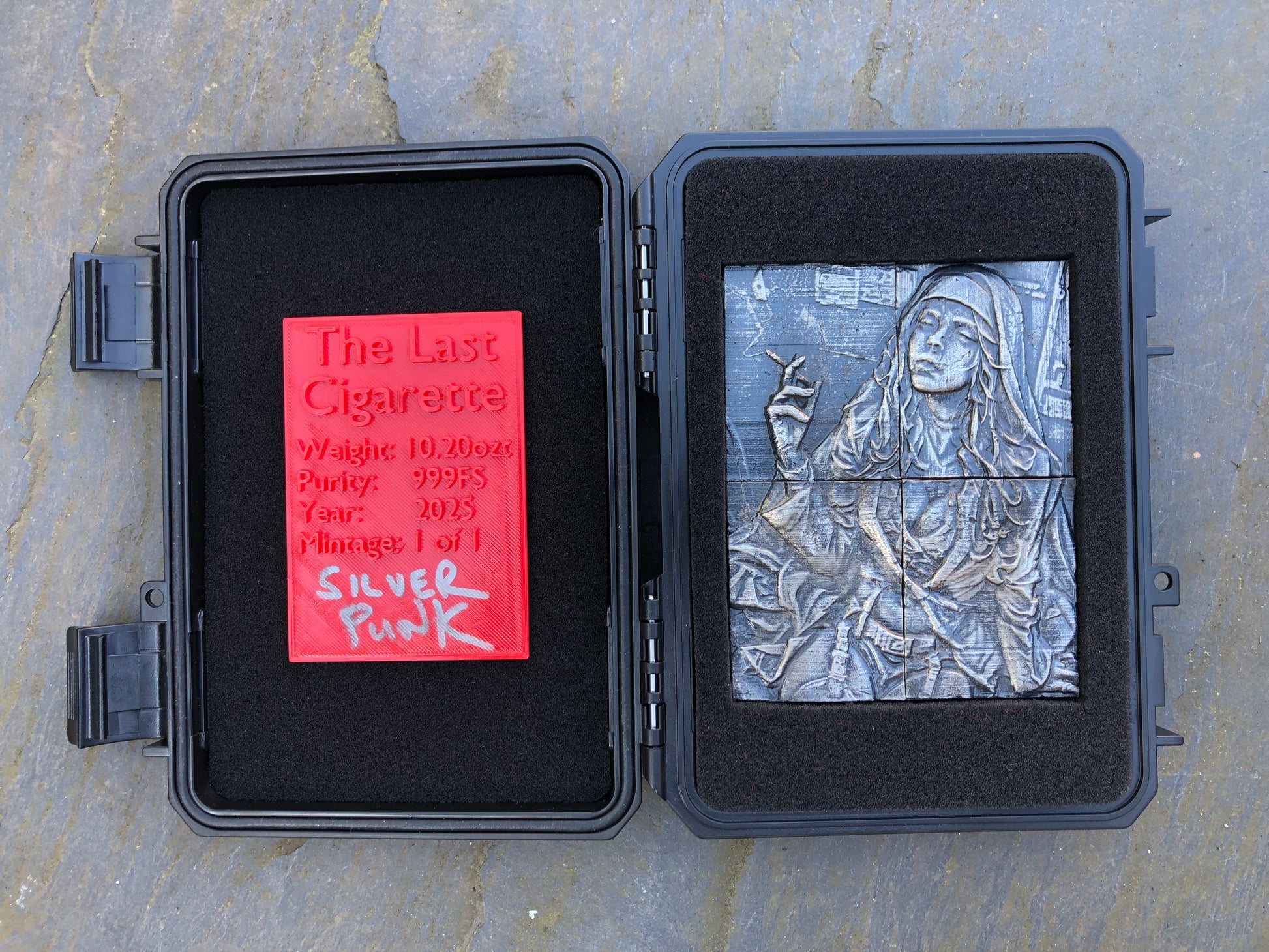 As a one-of-a-kind creation, this piece embodies both rarity and exclusivity. Once gone, it cannot be recreated making it an essential addition for discerning collectors and those seeking truly distinctive silver art. Embrace this singular opportunity and ensure "The Last Cigarette" becomes the unforgettable centrepiece of your collection.